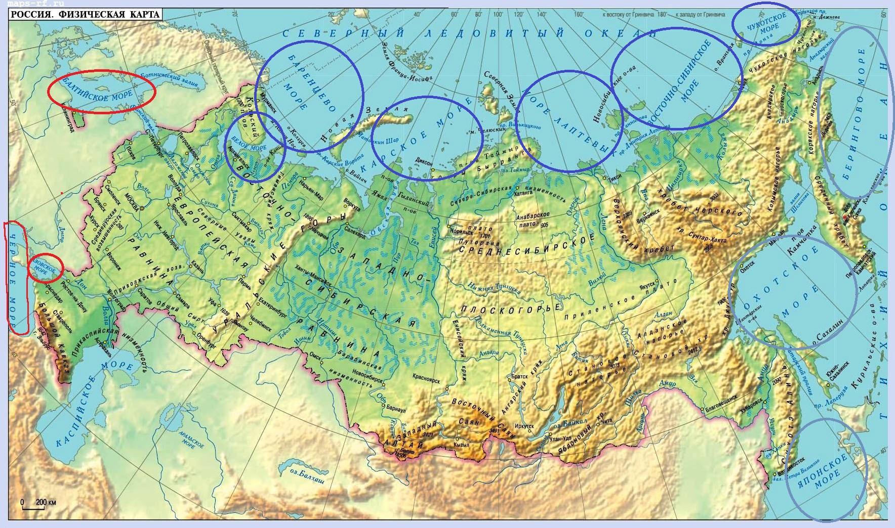 Определите к каким океанам относятся перечисленные моря.Синий Кружок-моря Северного Ледовитого океана
