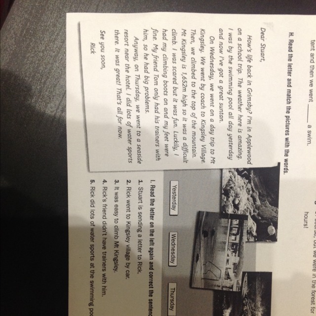 H) 1.Rick is sending a letter to Stuart.