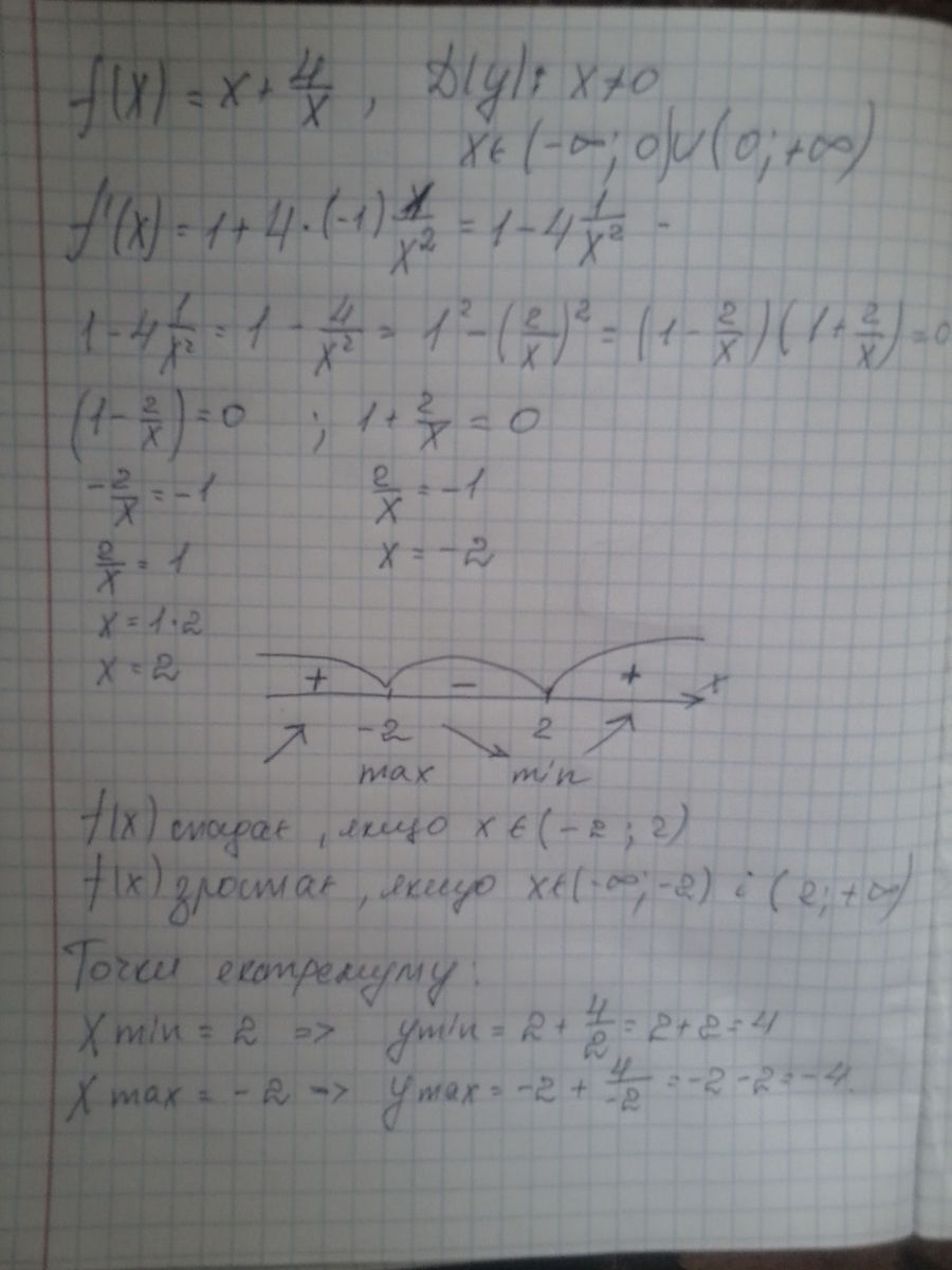 Визначте проміжки монотонності, точки екстремуму функції та значения функції в точках екстремуму .
