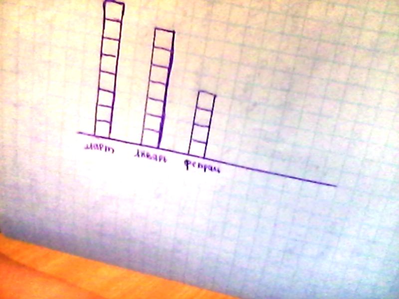 Построить диаграмму количества солнечных дней по месяцам , используя решение задачи( обозначать 2 дня одной клеткой)
