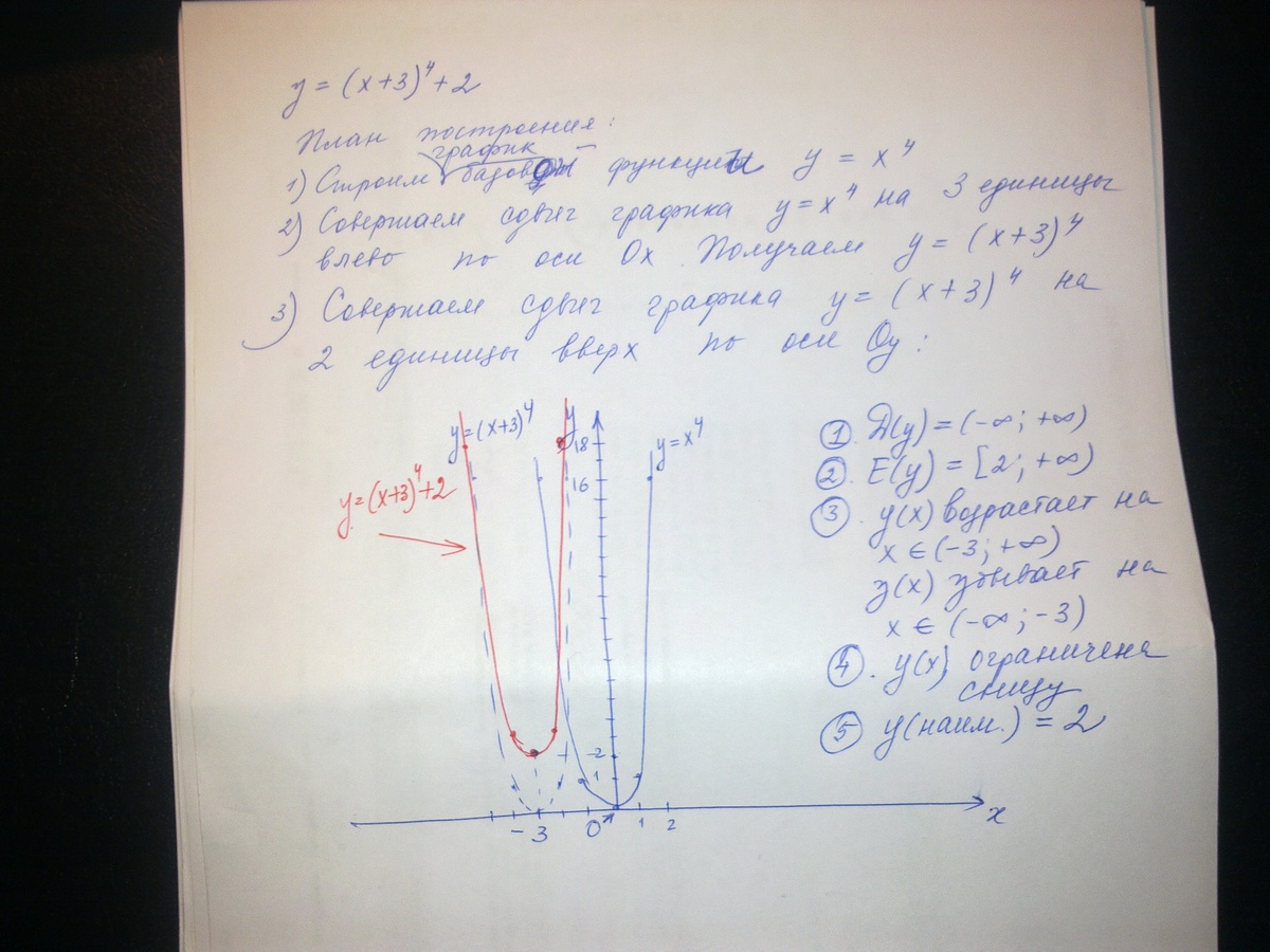 Построить график функции, указать её область определения и множество значений; выяснить, является ли функция возрастающей (убывающей), является ли функция ограниченной, принимает ли она наибольшее (наименьшее) значение: