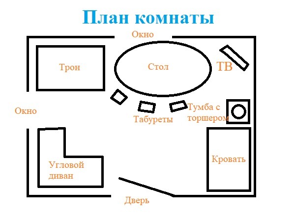 Пример плана комнаты изображён во вложении. Можно не детализировать всё сверх меры, здесь главное - расположение объектов.