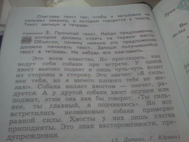 Но приглядитесь, как ведут себя собаки при встрече-это 1 предложение. 2 предложение.- Это всем известно. Смысл не теряется. Всё остальное также. Заглавие , мне кажется, " Повадки собак".