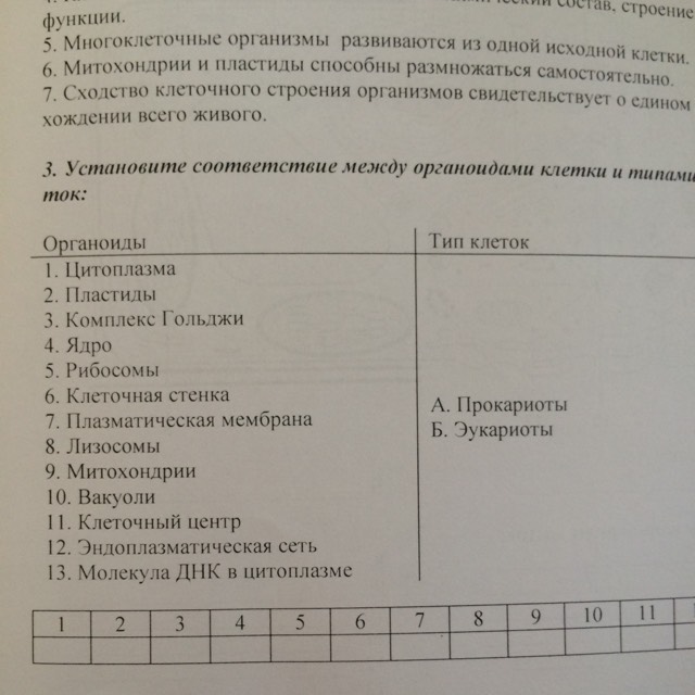 Установите соответствие между органоидом клетки и типами клеток