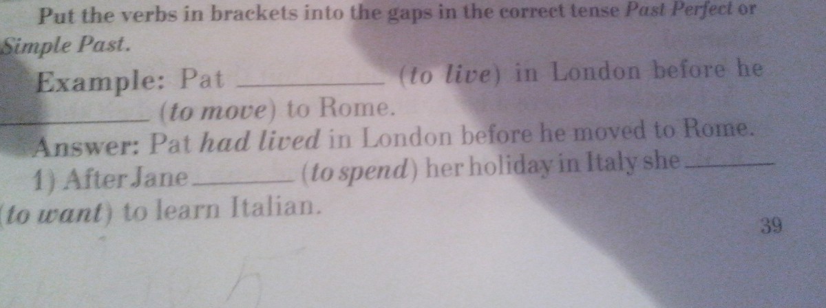 1.After Jane had spent her holiday in Italy she went to learn Italian.