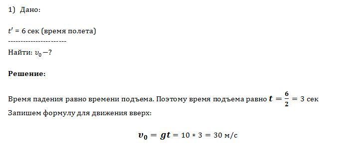 1) Камень брошенный вертикально вверх с поверхности земли,упал обратно на землю через 6 с. Сопротивление воздуха мало. Начальная скорость камня равна?
