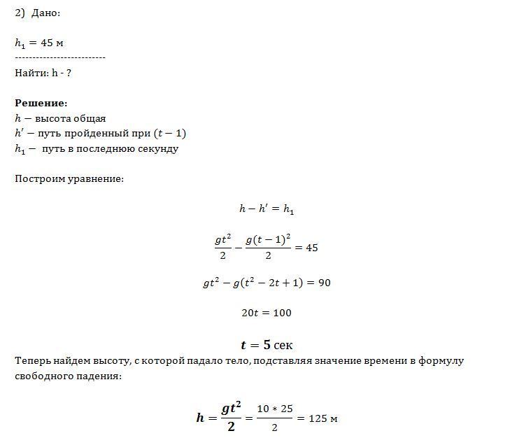2) С какой высоты падало тело,если в последнюю секунду падения оно прошло путь 45 м?