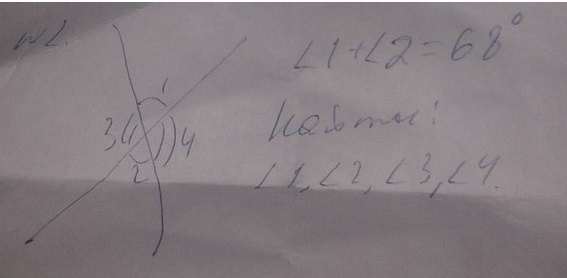угол 1 и угол 2=68/2=34.3=4,а на угол 3 остается 180-34=146.значит 3=4=146