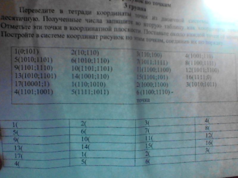 Переведите координаты точек из двоичной системы счисления в десятичную!