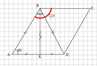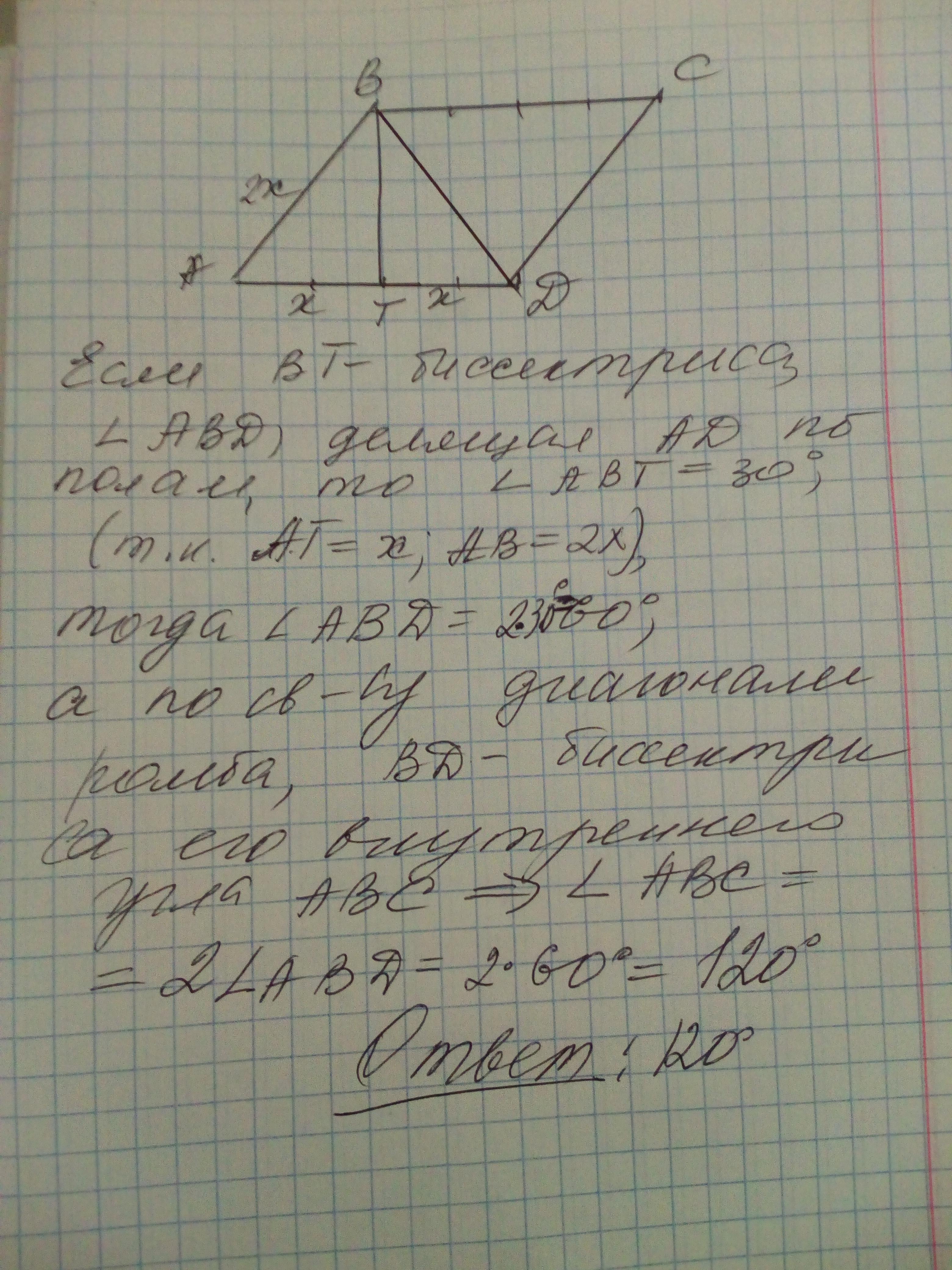 Поэтому АВ = BD = AD. И треугольник ABD равносторонний. Значит угол А = 60°, а угол В ромба равен 180° - 60° = 120°