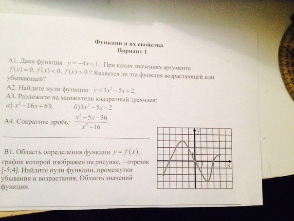 В1)будет 2 нуля функции,графика нету точно сказать немогу какие(ноль функции это где линия пересекает ось х),убываение от -2 до 4,возрастание от -5 до -2,игрек пренадлежит от -бесконечности до 3,икс пренадлежит от -5 до 4