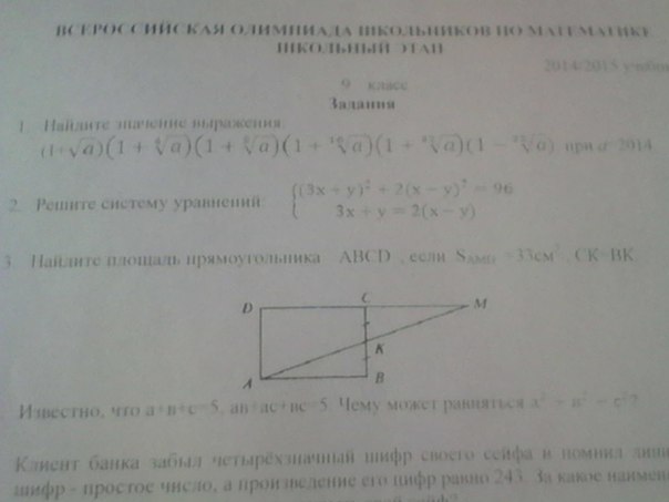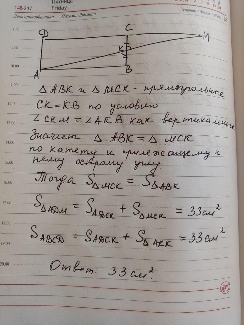Найдите площадь прямоугольника, если Samd=33см2, CK=BK