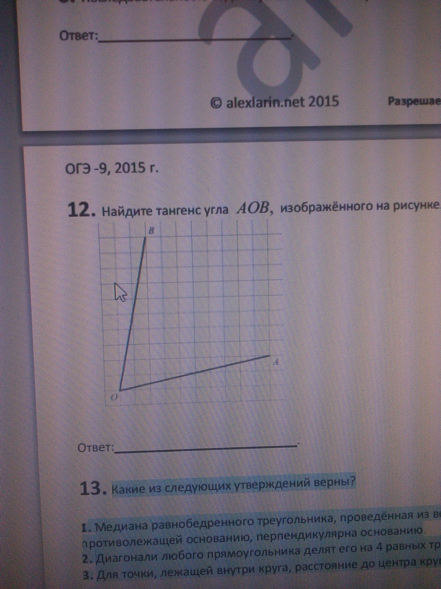 АВ² = ОВ² + ОА² - 2*ОВ*ОА*cosx