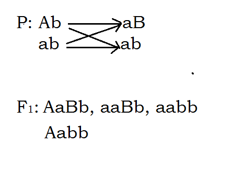 Итого получам AaBb (пурпуные, колючие), Aabb (пурпурные гладкие), aaBb (белые колючие), aabb (белые гладкие), в соотношении 1:1:1:1 по генотипу и фенотипу, или 25% получения таких плодов.