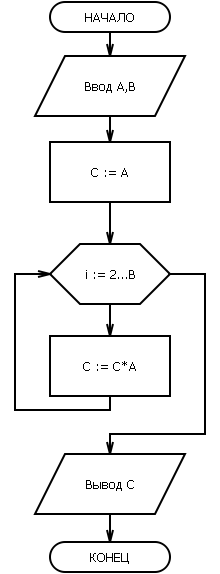 Пусть В=5. Его двоичное представление 101, т.е. 2²+1. Это означает. что нам надо перемножить А и (А*А)². Т.е. вычисление оптимально идет так: С=А², С=С², С=С*А. Итого три умножения вместо четырех. Для больших В "экономия умножений" будет очень большой. Например, для В=1024 потребуется не 1023 умножения, а всего 10.