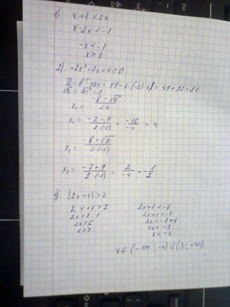 2)Решить неравенство -2х^2+7х+4>или равно 0