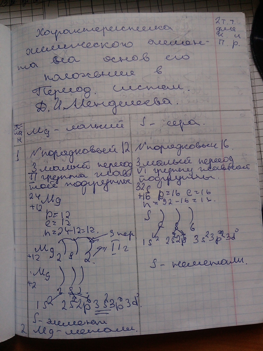 1. Изобразите схемы строения электронных оболочек атомов Mg(магний) и S (сера) исходя из положения их периодической таблице Д.И Менделеева.Укажите признаки сходства и различия между ними.