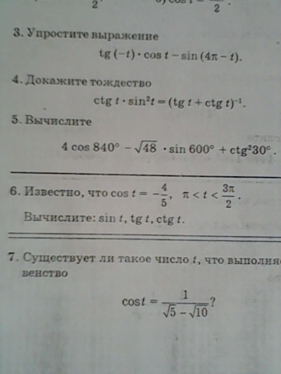 3.tg(-t)Cos t-sin(4п-t)=-Sin t/Cost * Cos t+Sint=-Sint+Sint=0/