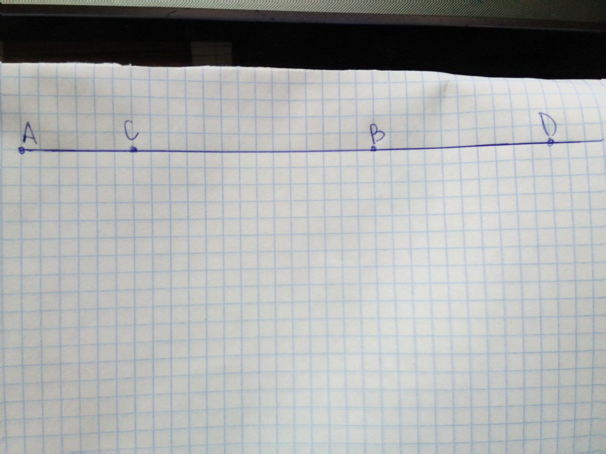 Отметьте на одной прямой четыре точкиA, B, C, D так, чтобы расстояние между точками A и B было равно 10 см, между A и C – 3 см, между B и D – 5 см, а между D и C – 8 см