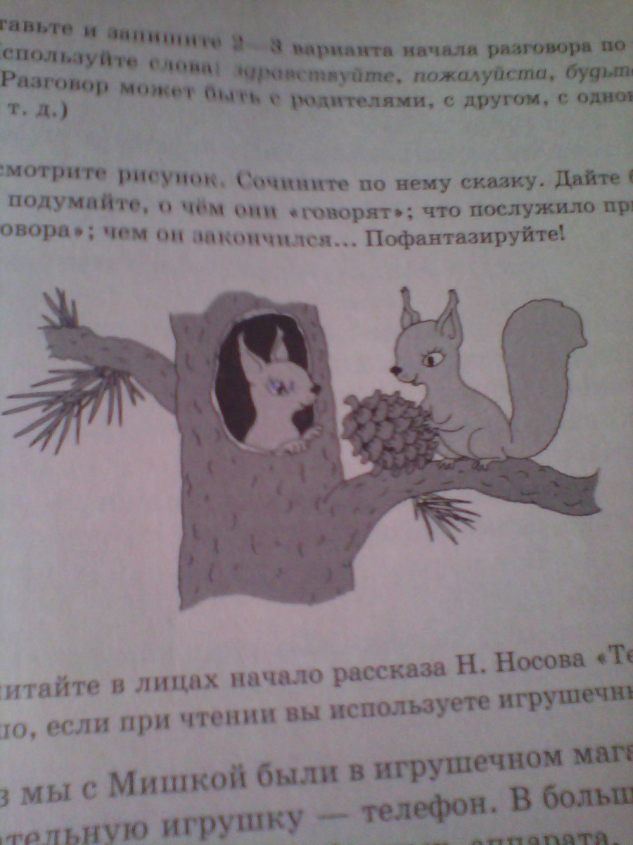 Рассмотри рисунок. Сочините по нему сказку. Дайте белкам клички; подумайте, о чём она "говорят"; что послужило причиной их "разговора"; чем он закончился... Пофантазируйте!
