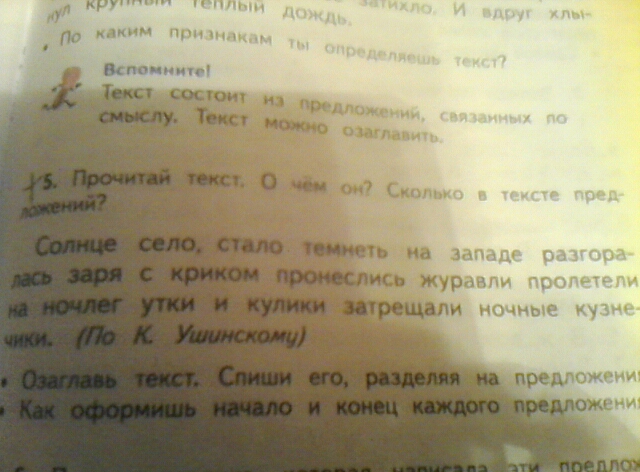 4 предложений заканчиваются на словах: темнеть, заря , журавли , кулики , кузнейчики