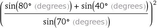 ... = ( 2*sin((80+40)/2)*cos((80-40)/2) / sin(90-20) )^2 =
