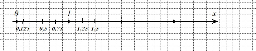 Начертите координатную прямую приняв за единичный отрезок 8 клеток отметьте числа 0,5 0,75 1,5 1,25 0,125