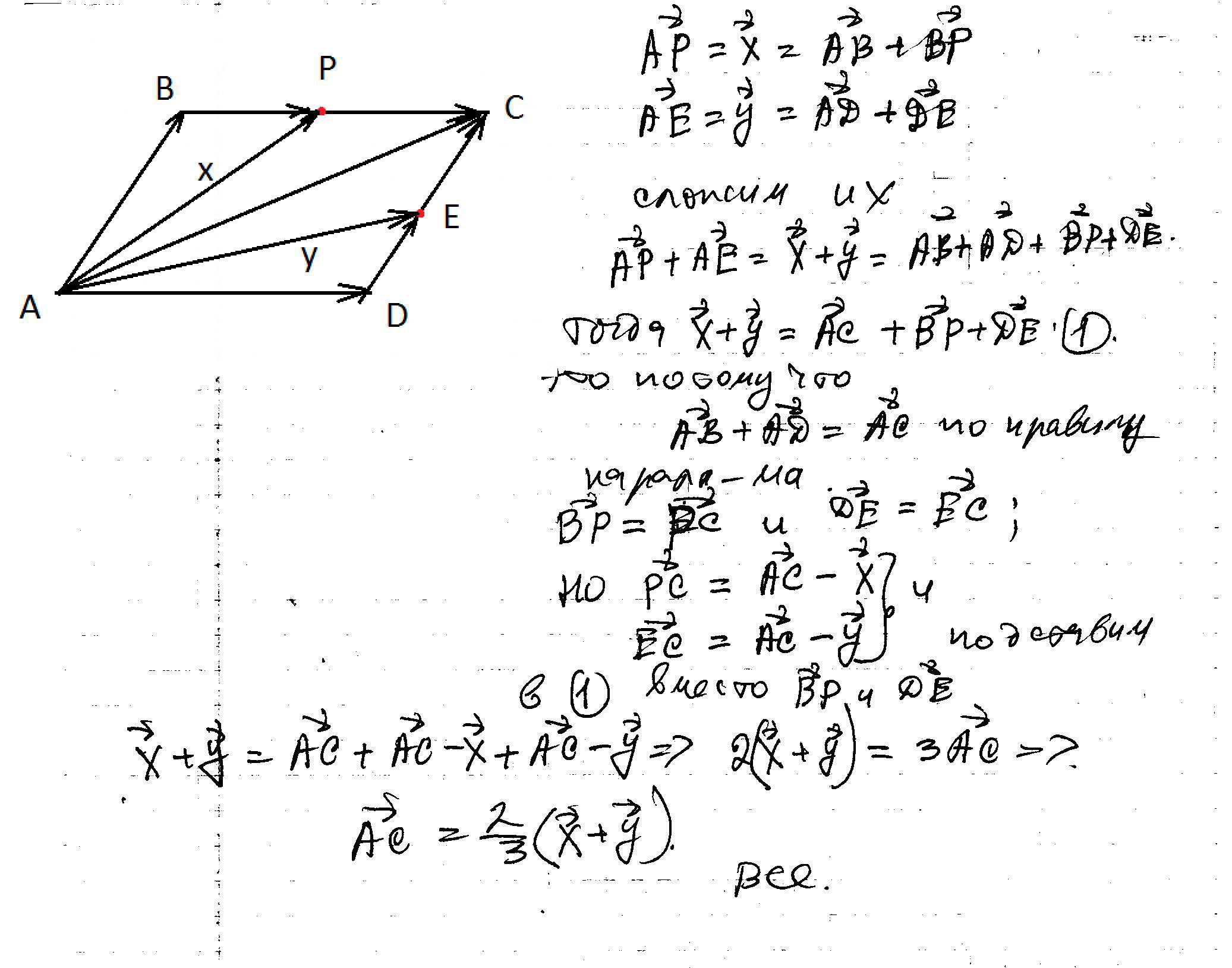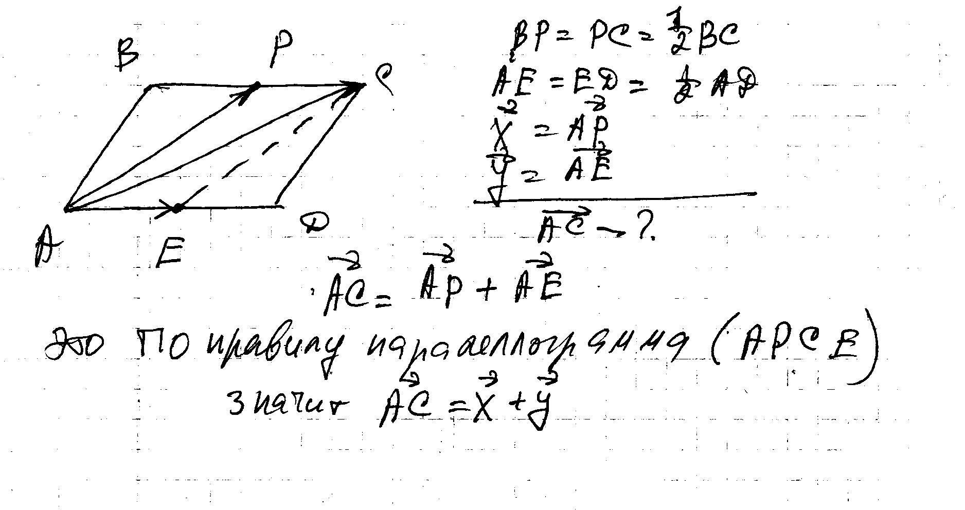 Точки P и E середины сторон BC и CD параллелограмма ABCD. Выразите вектор AC через вектор x = AP и y = AE