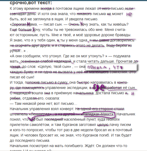Писать сокращенный текст не буду, но включи в него все самое главное, определи главную мысль