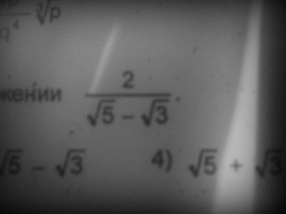 Умножаем числитель и знаменатель на (√5+√3); 2(√5+√3) (/5-3) = 2(√5+√3) /2 = √5+√3.