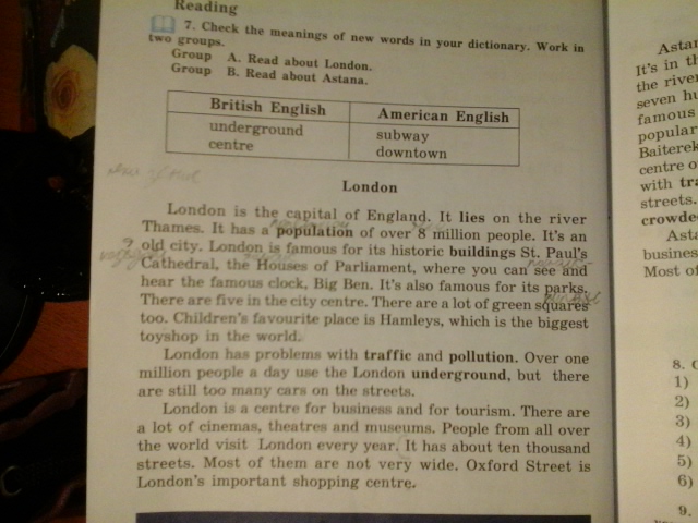 Лондон – это центр бизнеса и туризма. Там много кинотеатров, театров и музеев. Люди со всего мира приезжают в Лондон каждый год. В городе примерно 10 тысяч улиц. Большинство из них – не очень широкие. На Оксфорд Стрит расположены самые крупные торговые центры.