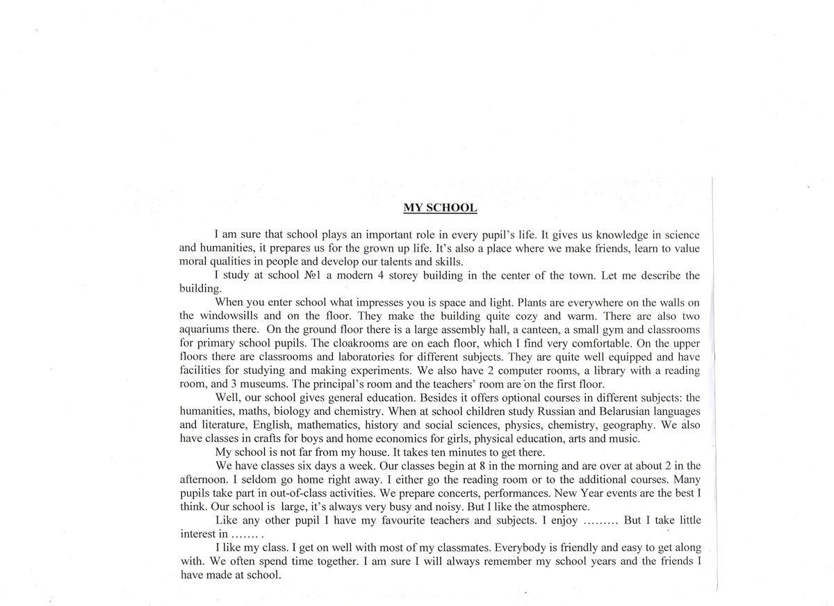 Как и любой другой ученик л мои любимые учителя и предметы. Мне нравится, но я беру мало