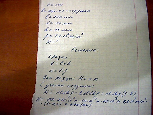 инструментальный цех получил задание изготовить 150 резцов. Сколько стали на это нужно, если 10% ее идет в стружку. Длина стебля резца 270 мм, ширна 50 мм и высота 45 ммм. Плотность стали 7800 кгм ответ