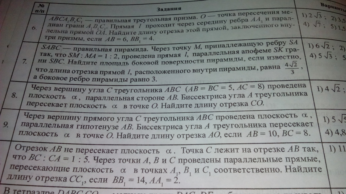 Отрезок прямой l внутри призмы является средней линией в треугольнике АА₁О и равен √((4/2)²+(2√3/2)²) = √(4+3) = √7.