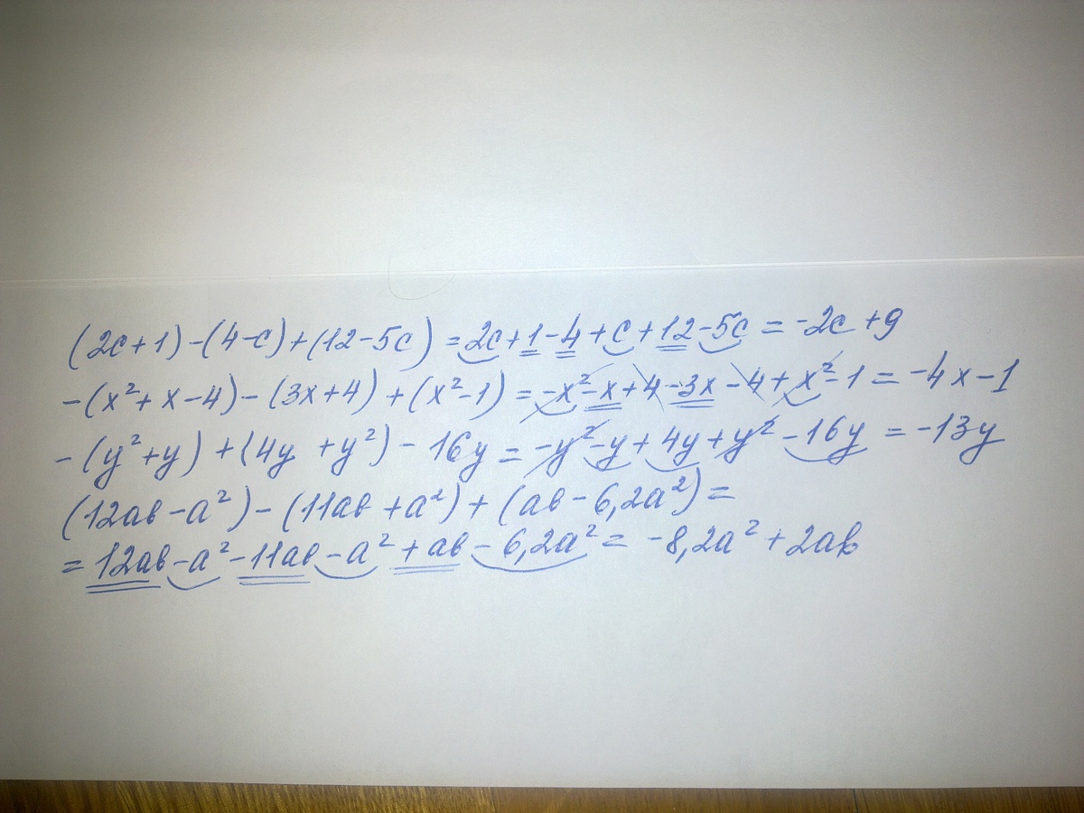 преобразуйте в многочлен стандартного вида (2c + 1) - (4 - с) +(12 - 5с)