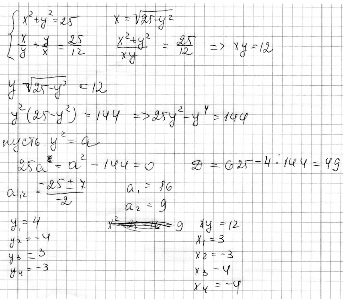 Сумма квадратов числителя и знаменателя некоторой дроби равна 25.Сумма этой дроби и обратной ей дроби равна 25/12.Найти дробь Помогите плиз