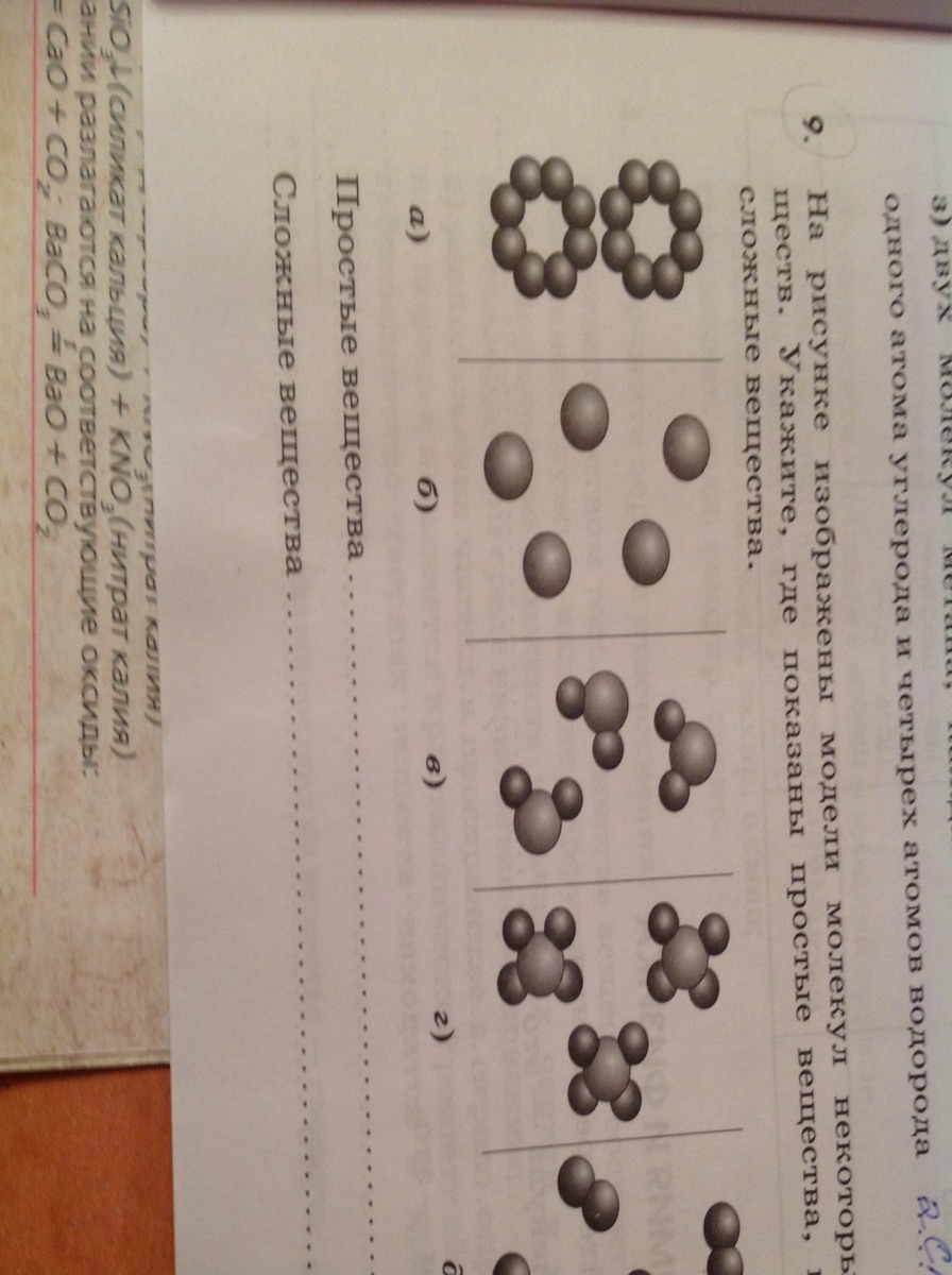 На рисунке изображены модели молекул некоторых веществ. Укажите, где простые вещества, где сложные.