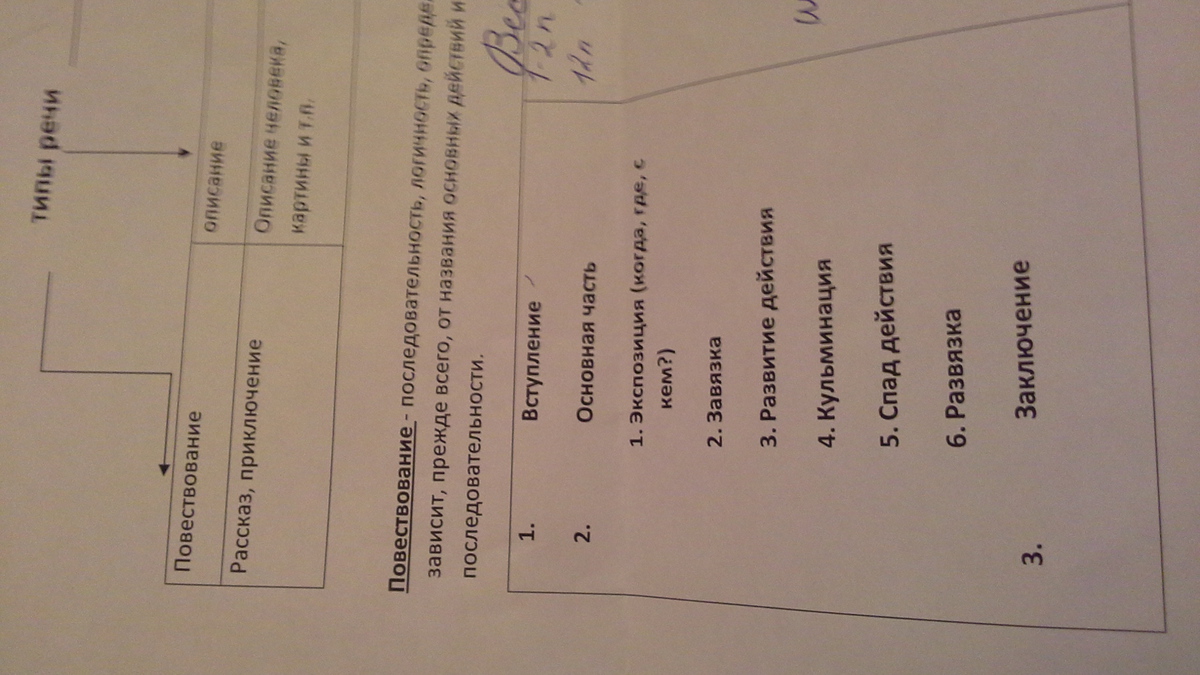 что такое вступление,основная часть, экспозиция (когда, где, с кем), завязка, развитие речи, кульминацыя, спад действия, развязка, заключение.