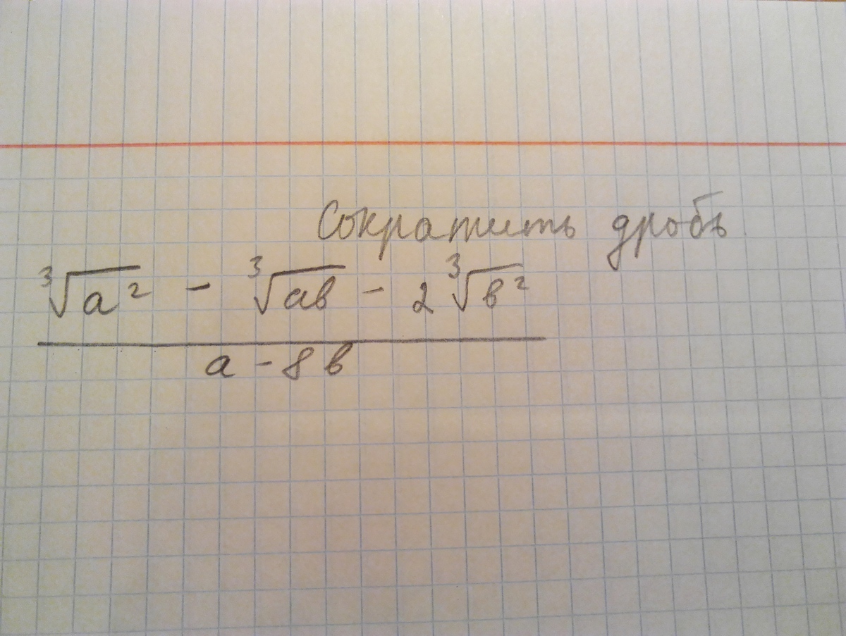 ![frac{ sqrt[3]{a^2} - sqrt[3]{ab} -2 sqrt[3]{b^2} }{a-8b} = frac{ x^2 - xy -2 y^2}{x^3-8y^3} =