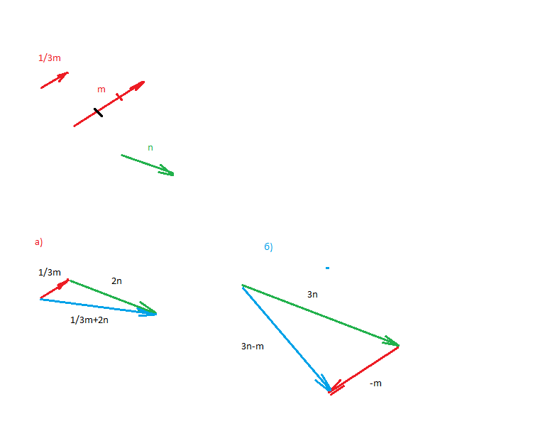 1. Начертите два неколлонеарных вектора m и n. Постройте векторы, равные: а) 1/3 m + 2 n