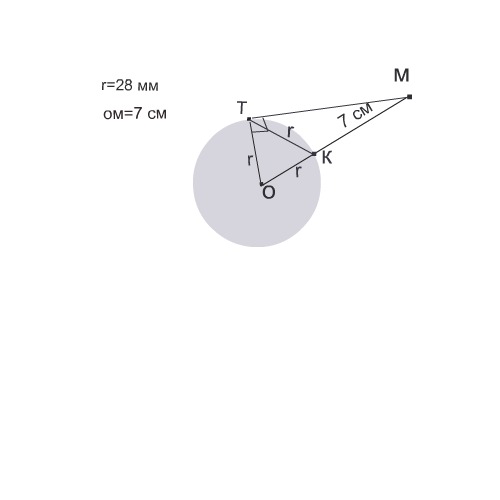 при помощи линейки и циркуля проведите касательные из точки M к окуржности с радиусом 28 мм если ОМ= 7 см