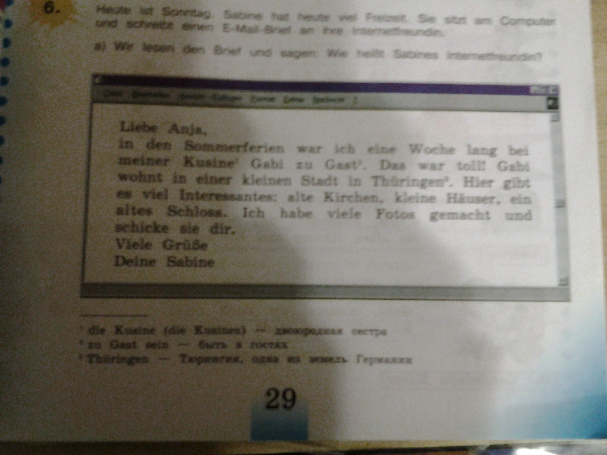 Дорогая Аня, на летних каникулах гостила неделю у моей кузины Габи. Было здорово! Габи живет в маленьком городке в Тюригнене. Здесь много интересного: старые церкви, маленькие дома, старые замки. Я сделала много фотографий и дарю их тебе. Удачи ! Твоя Сабина