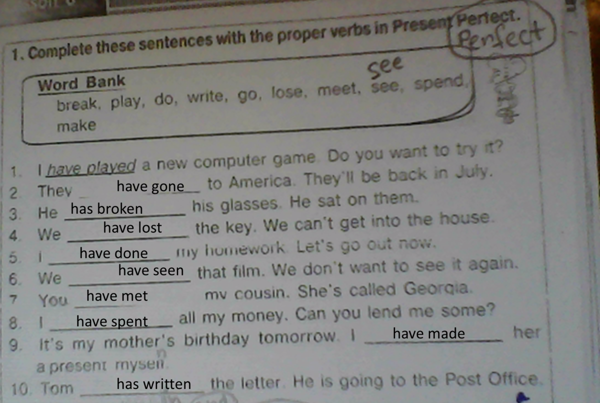 9. У моей мамы завтра день рождения, я сделал ей подарок сам.