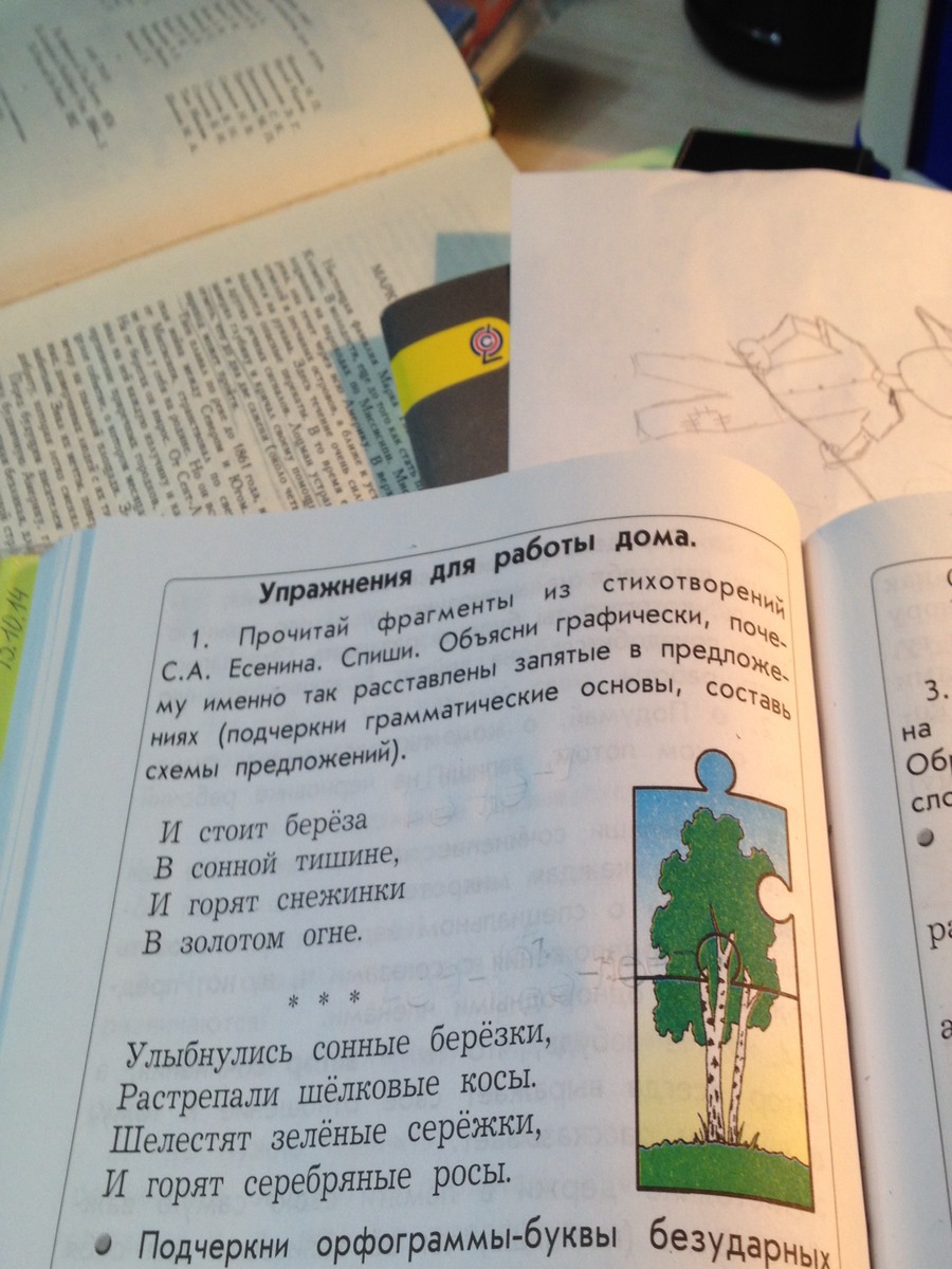 1) И стоит береза в сонной тишине, и горят снежинки в золотом огне. Запятая стоит, т.к. это сложное предложение, которое имеет две грамматические основы. Стоит - сказуемое, береза - подлежащее (первая основа). Горят - сказуемое, снежинки - подлежащее (вторая основа).