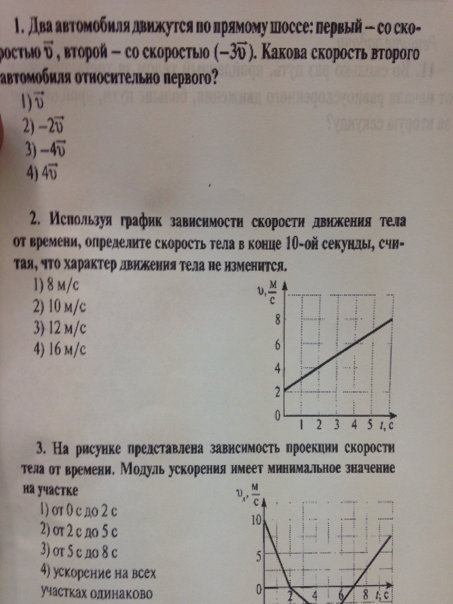 Самый пологий участок графика - наименьшее ускорение, от 2 до 5 с (2)
