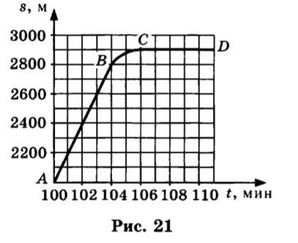 Помогите пожалуйста! По графику движения корабля, подходящего к причалу ( рис. 21 ) , определите скорость его движения на участке AB.