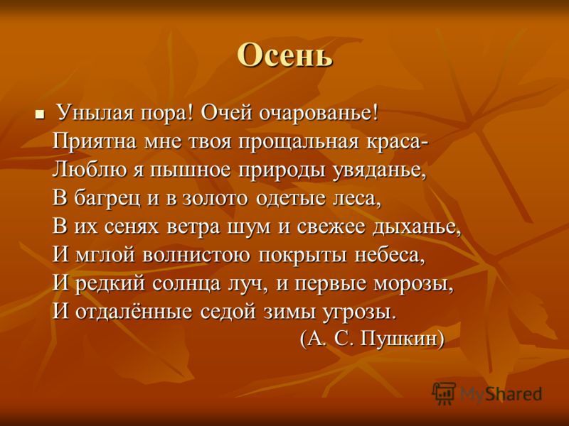 Какие средства художественной выразительности отбирает Пушкин для создания картины осени запиши если можно то по скорее