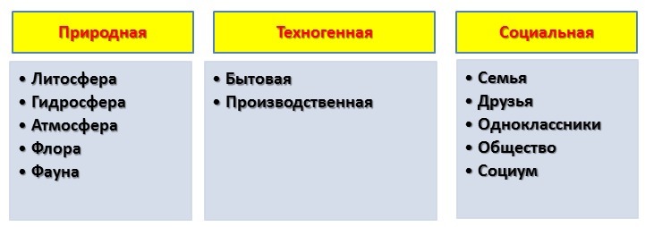 перечислите элементы среды обитания человека заполните таблицу