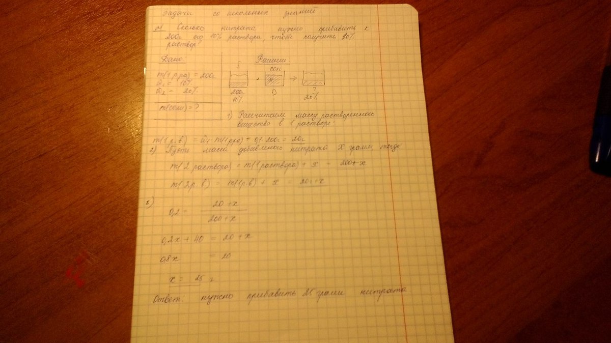 очень нужно,задача вроде легкая,не решать не могу.сколько нитратов нужно добавить к 200 г его 10% раствора,чтобы получить 20% раствор?