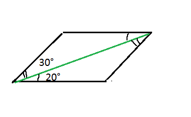 Диагональ параллелограмма образует с его сторонами углы в 20 градусов и 30 градусов .Найдите углы этого параллелограмма